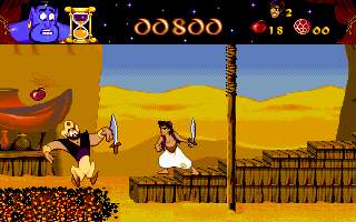 Aladdin Оппа! Една игра любимка от стари времена! На Аладин е възложена мисията да обере всички ябълки и да изтрепе злите телибани ... хехе... или каквито там са лошите типове. Много приятна игра, който не я е играл преди - сега му е времето. Изисквания: 386CPU, 4MB RAM, VGA, Mouse, Sound Blaster |